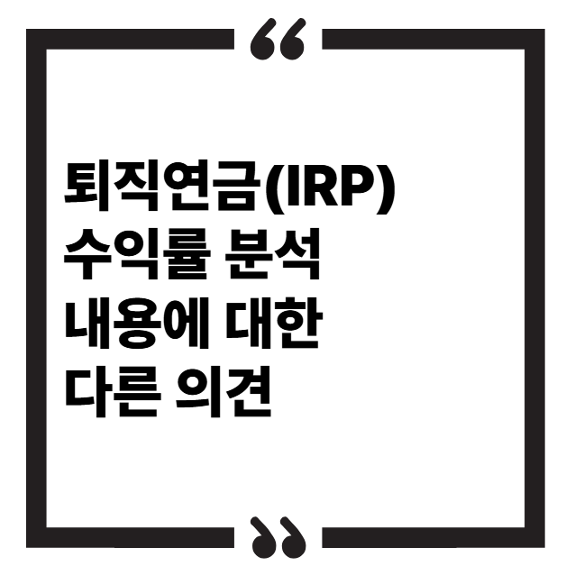 📌 퇴직연금(IRP) 수익률 분석 내용에 대한 다른 의견