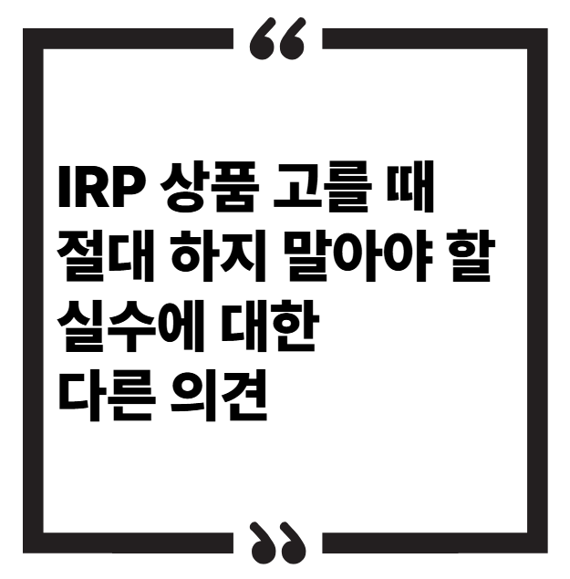 📌 "IRP 상품 고를 때 절대 하지 말아야 할 실수" 내용에 대한 다른 의견