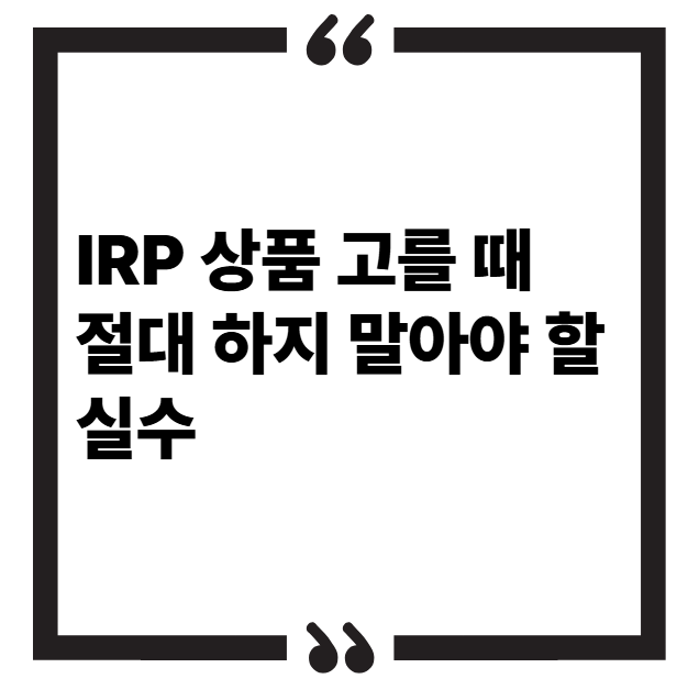 IRP 상품 고를 때 절대 하지 말아야 할 실수
