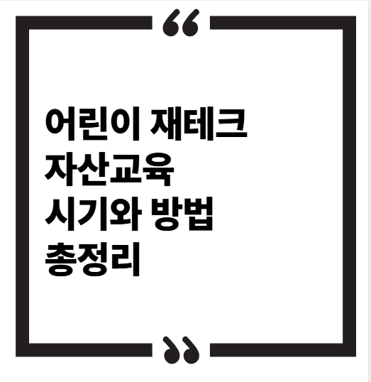 어린이 재테크, 몇 살부터 가능할까? – 자산교육 시기와 방법 총정리