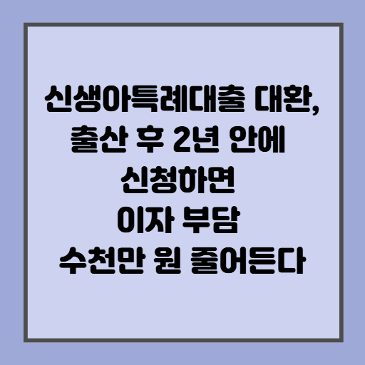 신생아특례대출은 출산 가구에게 실질적인 주거 부담 완화 혜택을 주는 제도입니다.