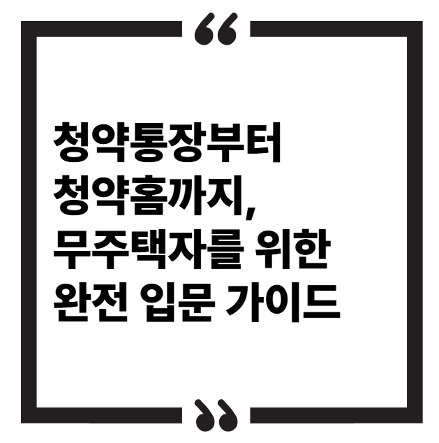 청약통장부터 청약홈까지, 무주택자를 위한 완전 입문 가이드